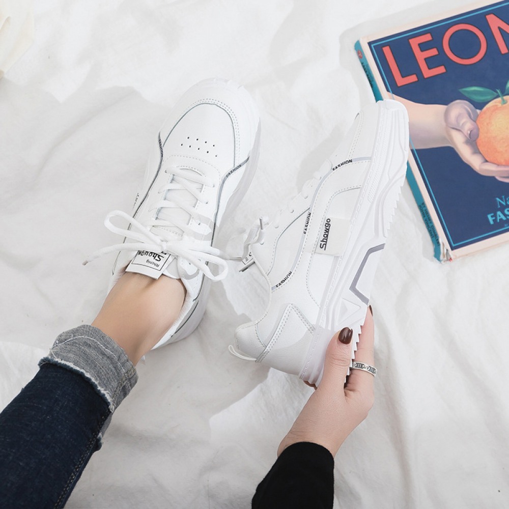 Spring New White Leather Shoes Running Flat Casual Shoes